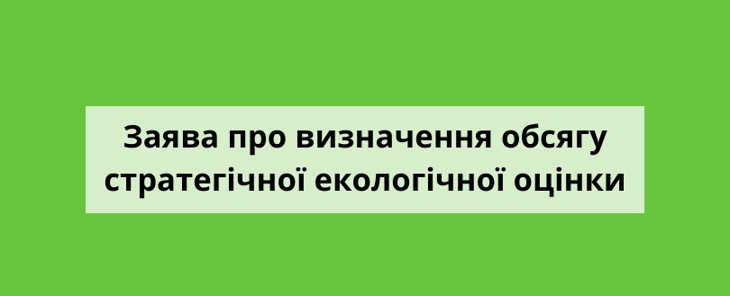 Повідомлення про оприлюднення заяви про визначення обсягу стратегічної екологічної оцінки проєкту містобудівної документації