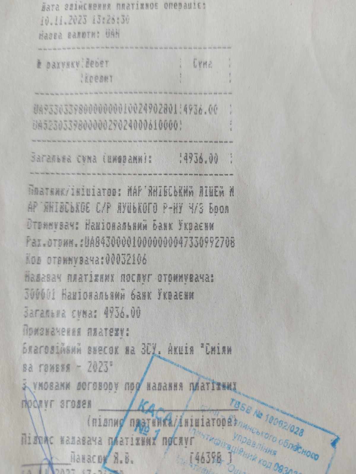 Заклади освіти Мар'янівської селищної ради другий рік поспіль долучаються до благодійної акції Національного банку України "Смілива гривня.Мета проведення акції- зібрати кошти на допомогу Збройним Силам України та дати можливість українцям зробити свій внесок у перемогу, адже найменша пожертва є важливою.