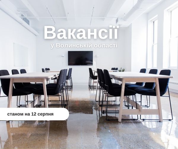 Актуальні вакансії у Волинській області, станом на 12 серпня