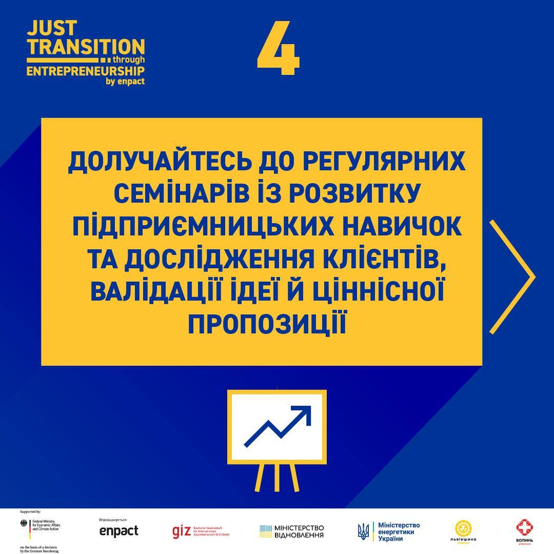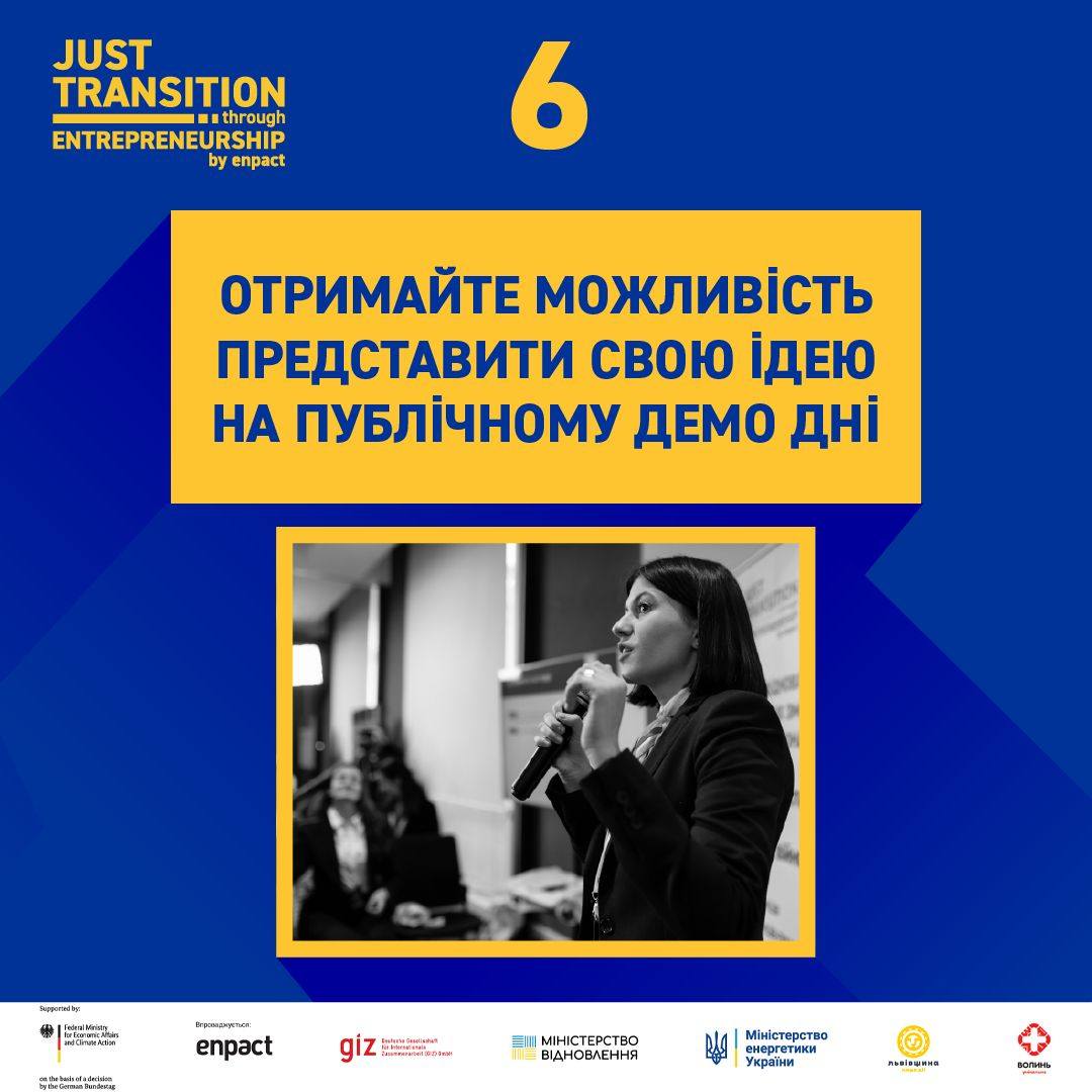 Реєструйтеся на напрям ""Ідеї"" проєкту ""Just Transition through Entrepreneurship"" в Україні! Протягом 3-х місяців ви матимете можливість розвинути свої бізнес-ідеї завдяки тренінгам, нетворкінгу, навчанню та доступу до бюджету на покращення ідеї.