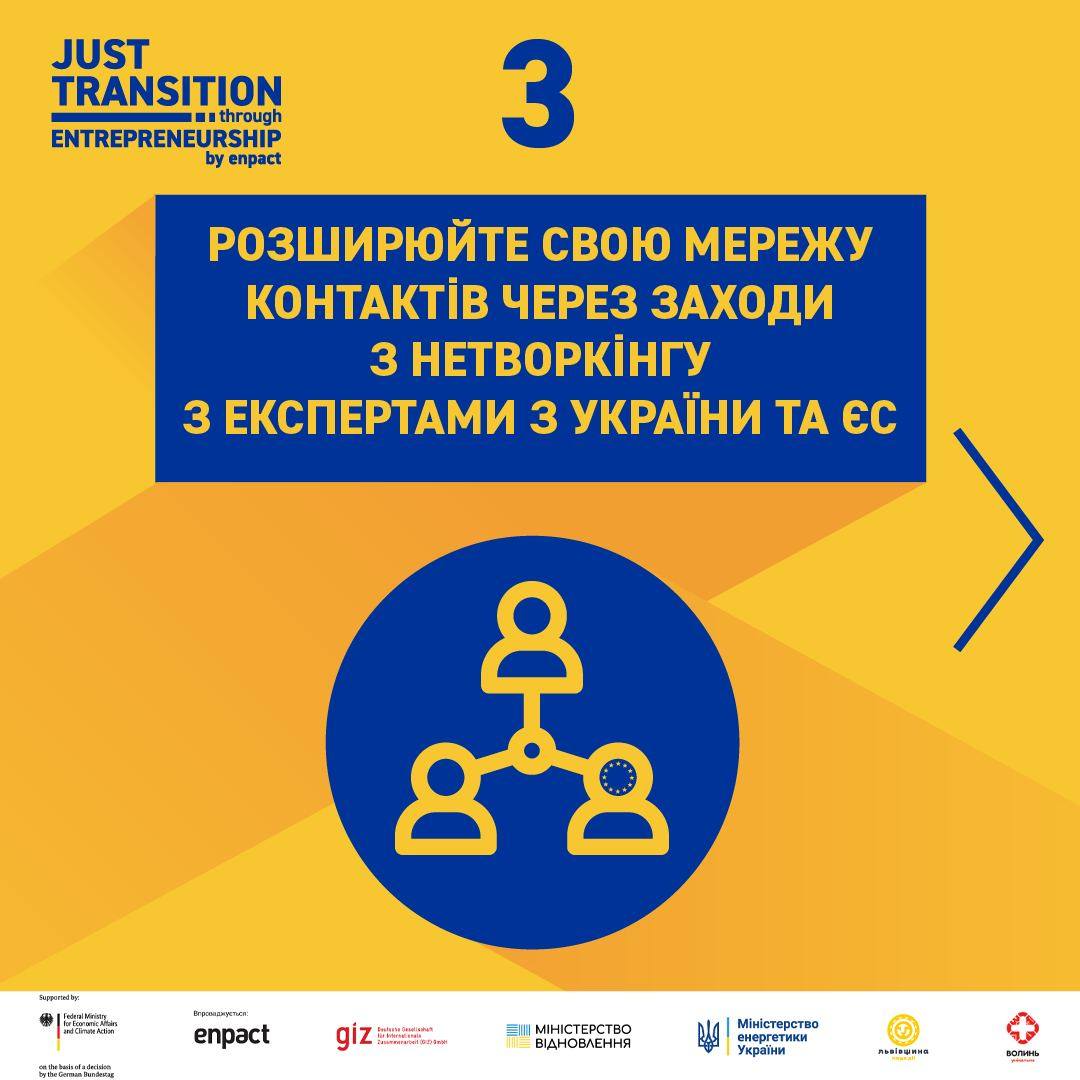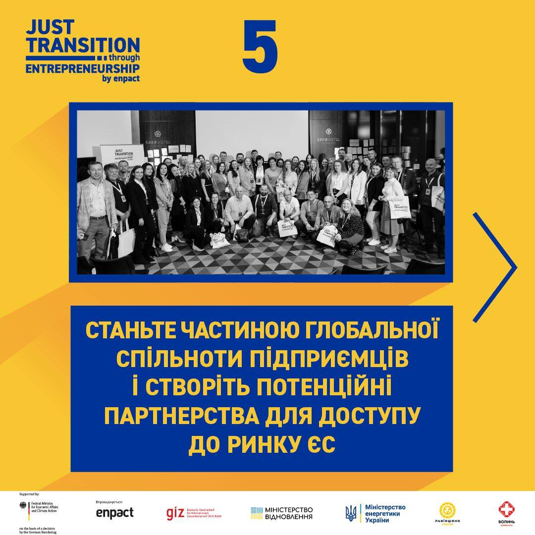 Проєкт “Just Transition through Enterpreneurship” фінансується Федеральним міністерством економіки та клімату Німеччини (BMWK) за підтримки Deutsche Gesellschaft für Internationale Zusammenarbeit (GIZ) GmbH.