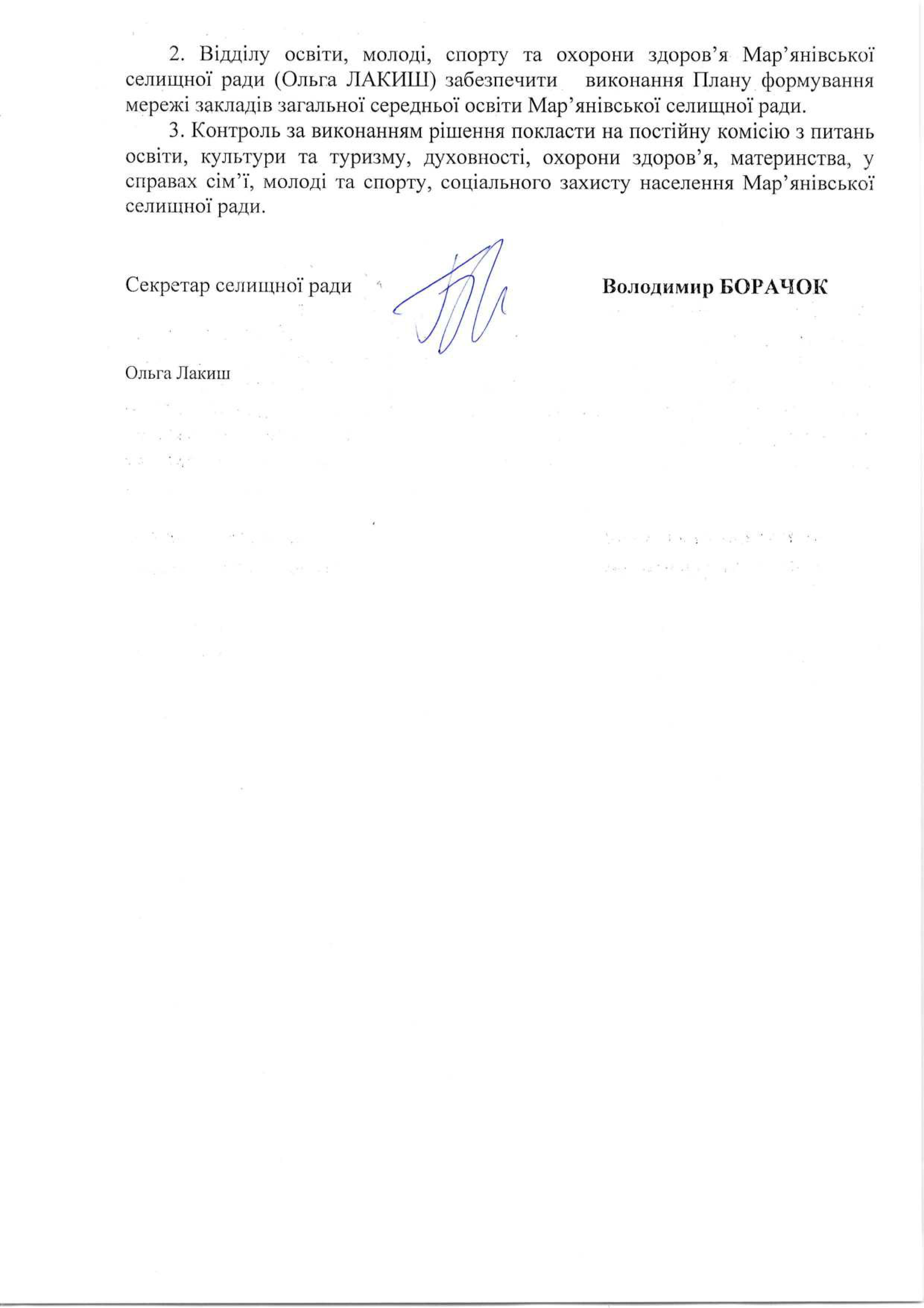 - Визнати Борочичевську гімназію Мар’янівської селищної ради Луцького району Волинської області правонаступником прав та обов’язків Борочичевського ліцею Мар’янівської селищної ради Луцького району Волинської області (код ЄДРПОУ 23020028).