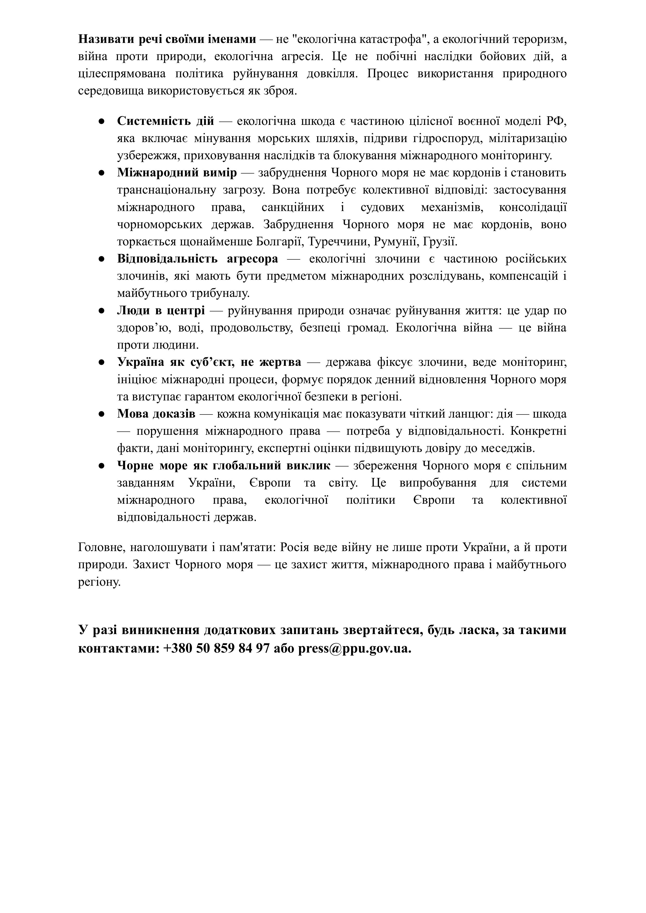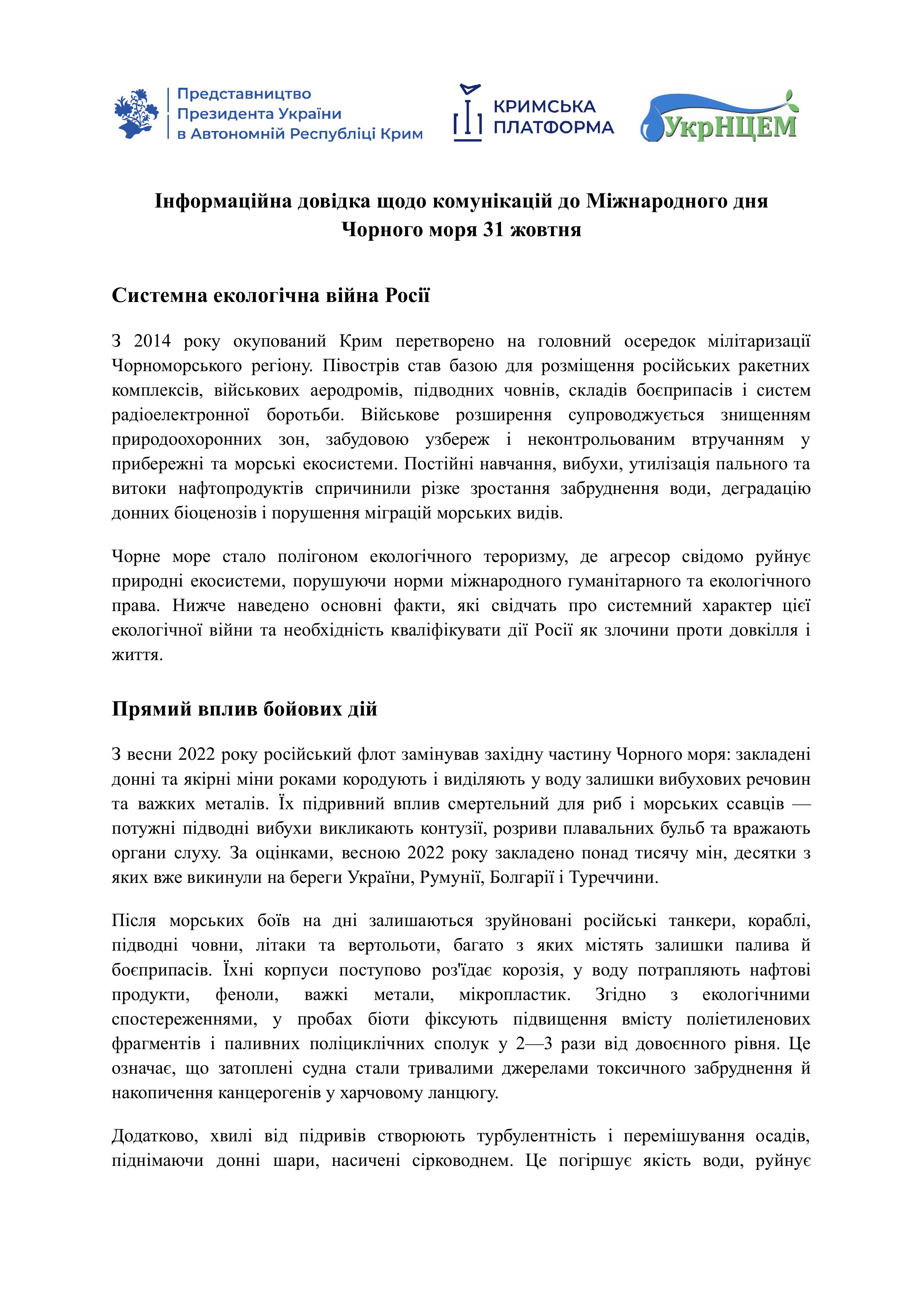 Інформаційна довідка щодо комунікацій до Міжнародного дня Чорного моря 31 жовтня