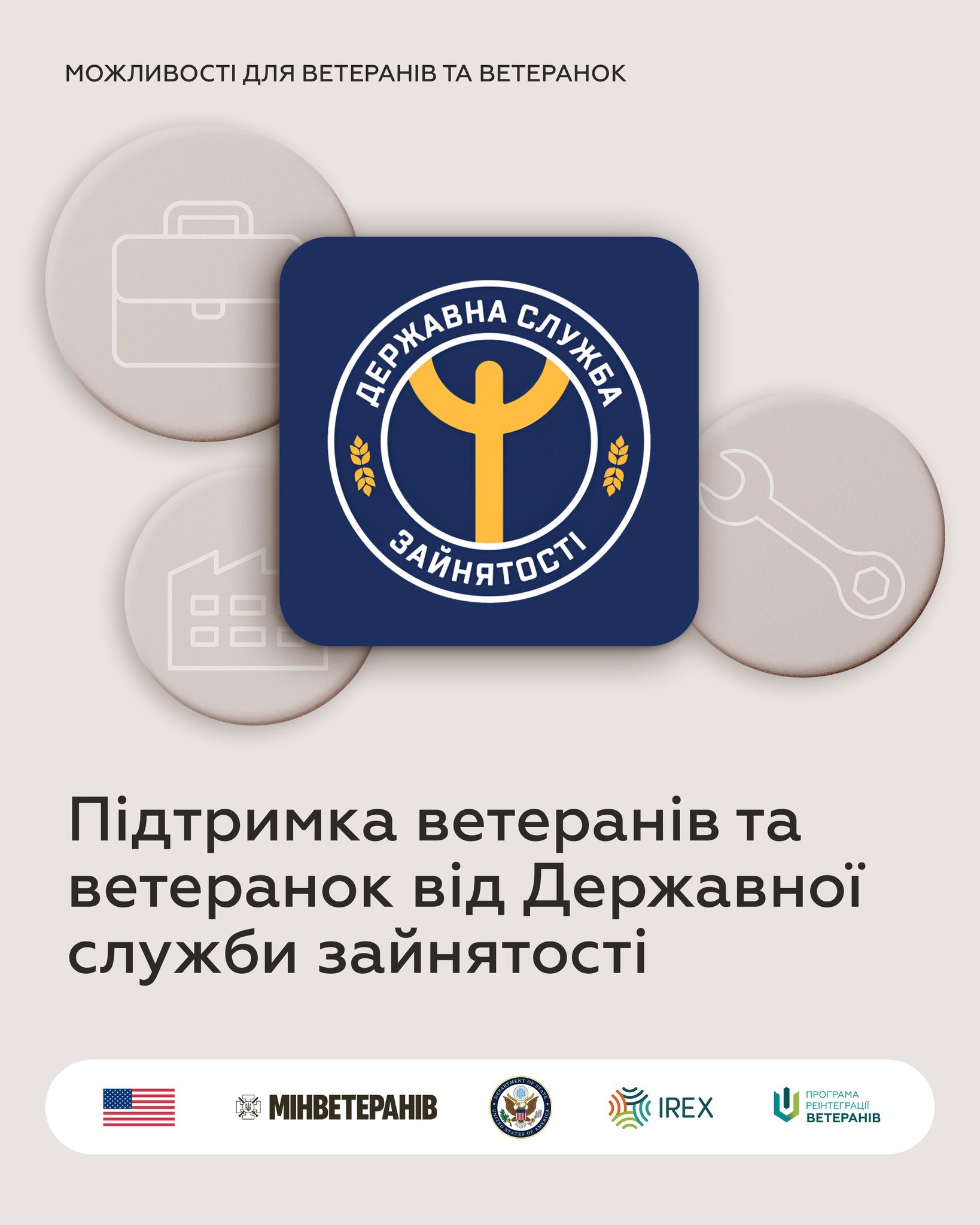 Інформаційна кампанія «Можливості для ветеранів та ветеранок» реалізовується в межах партнерства Мінветеранів та Програми реінтеграції ветеранів, яку втілює IREX за підтримки Державного департаменту США.