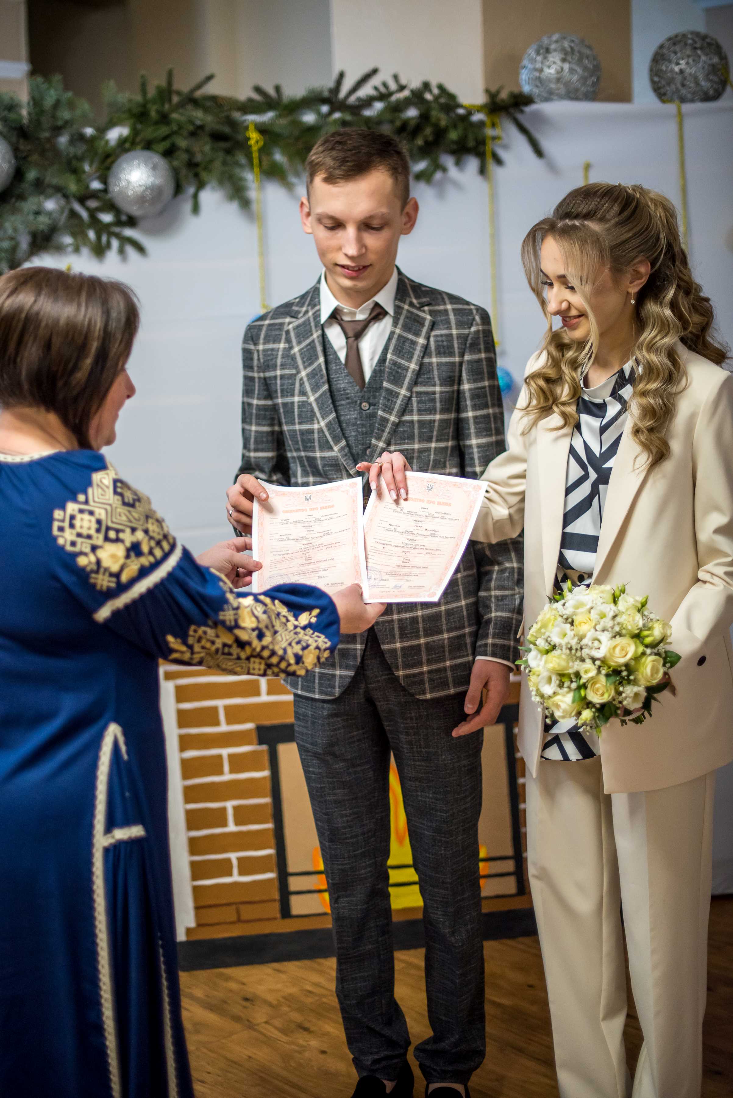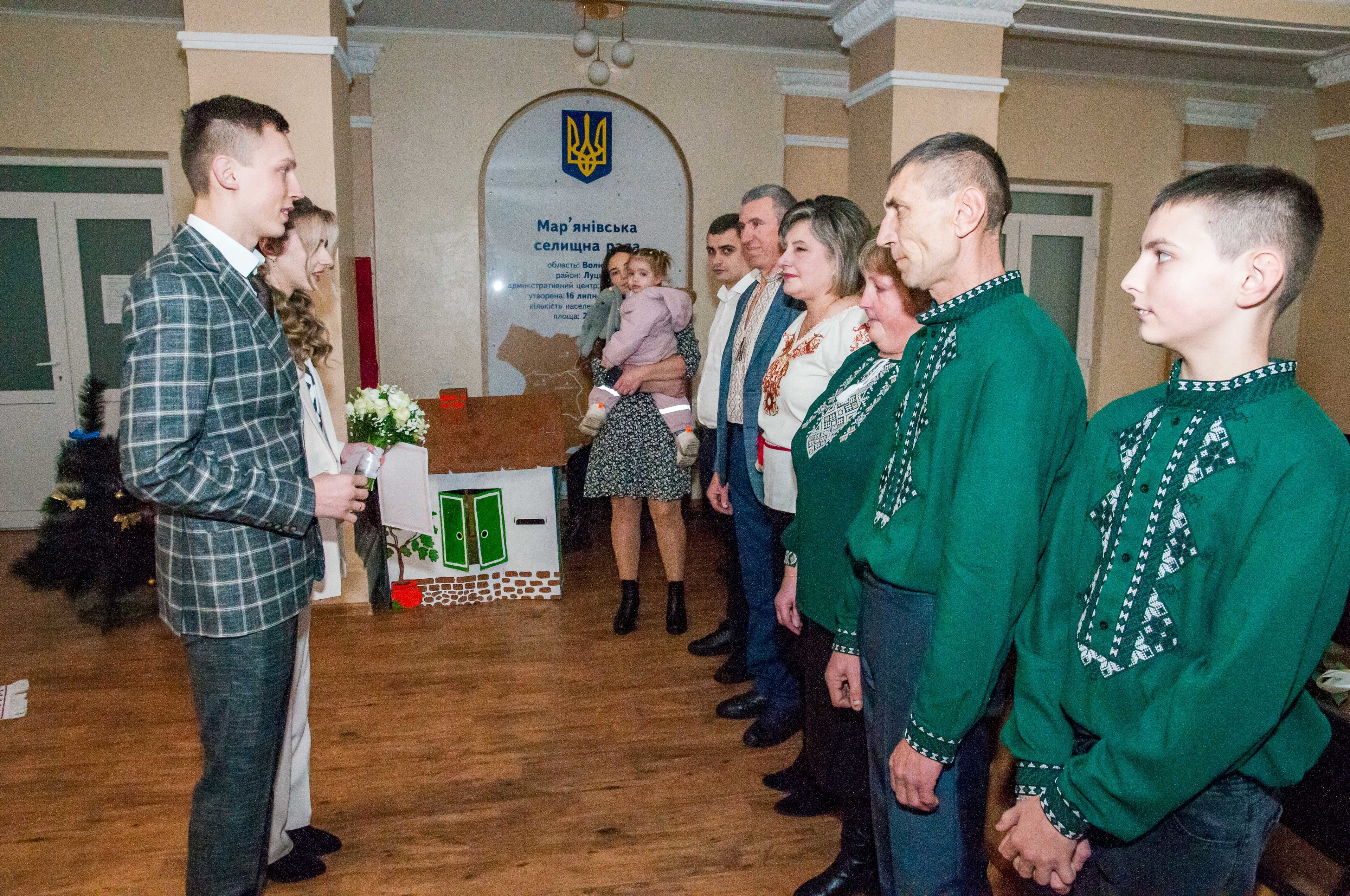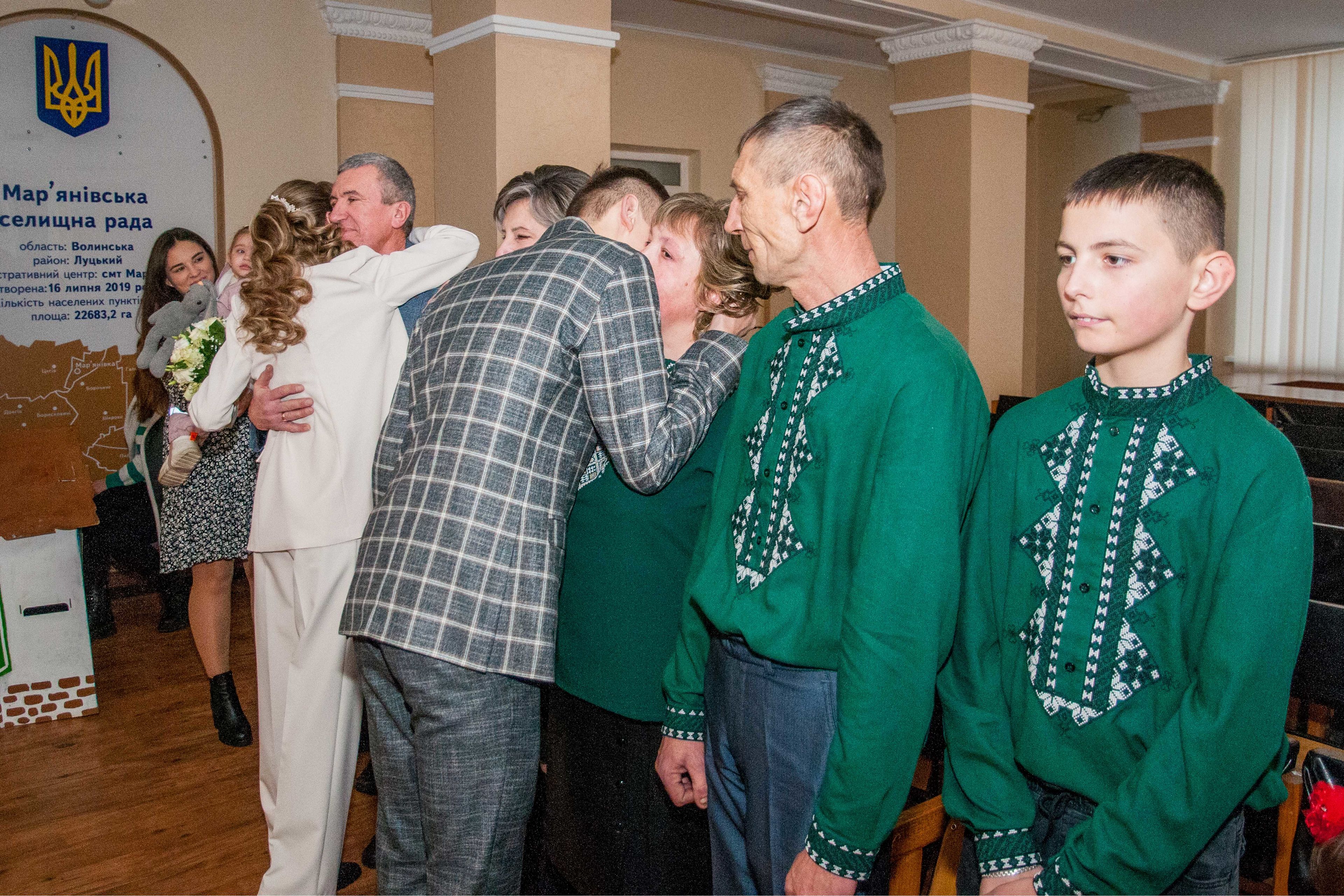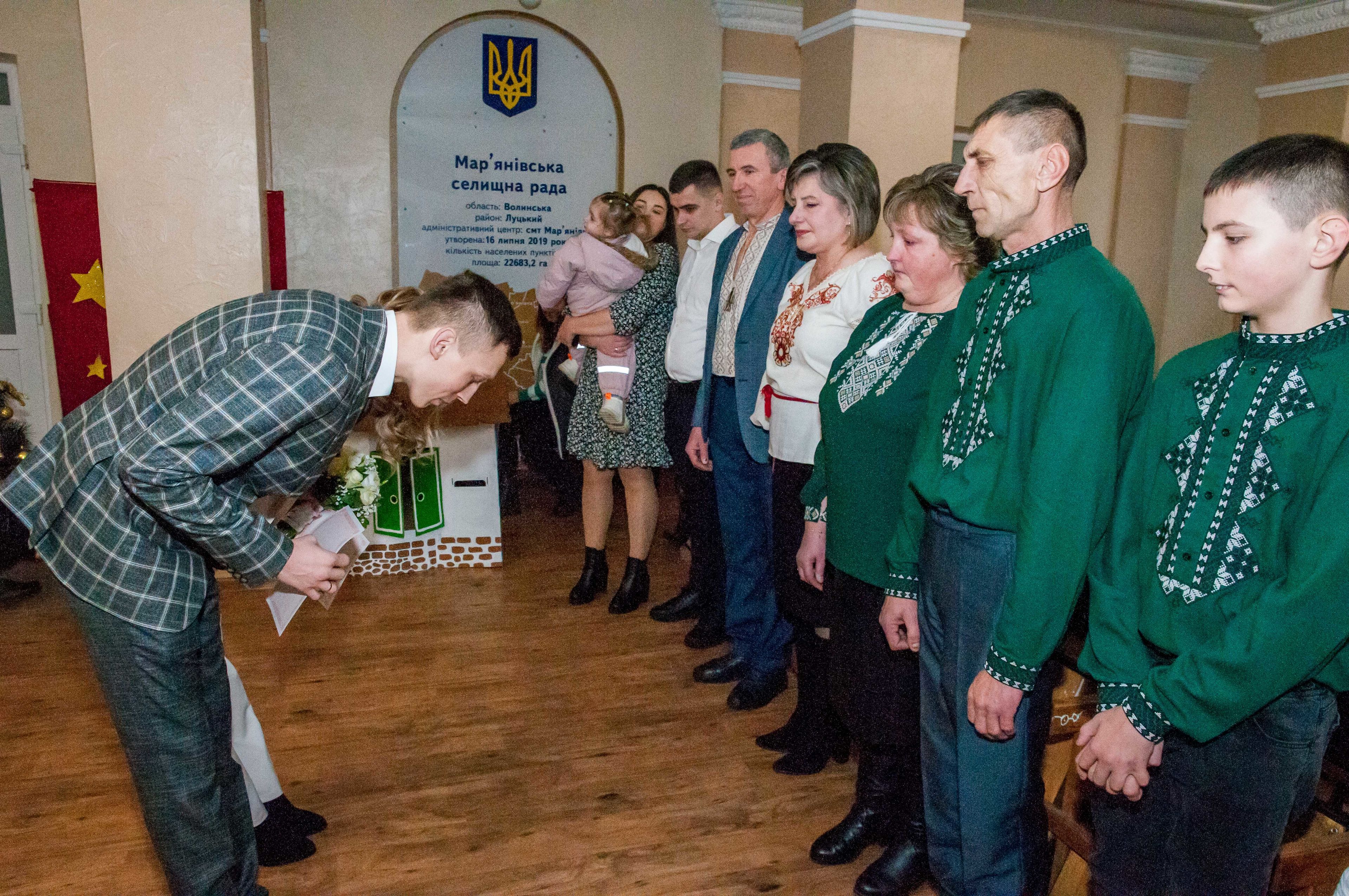 Молодята зареєстрували шлюб у Мар'янівській селищній раді і тепер йтимуть по життю разом як сім’я зі спільним прізвищем Савка. Свідками офіційної церемонії стали батьки наречених.