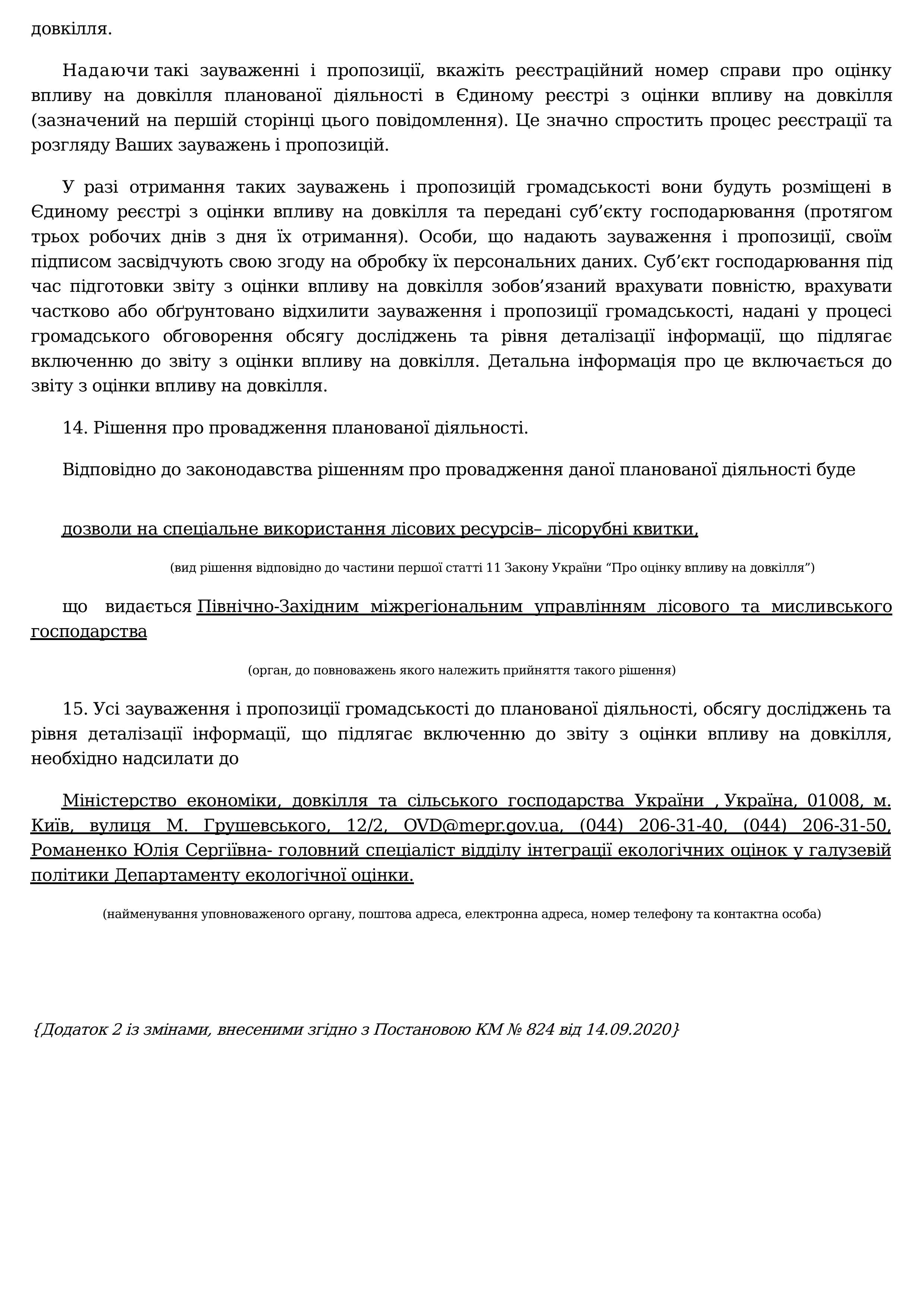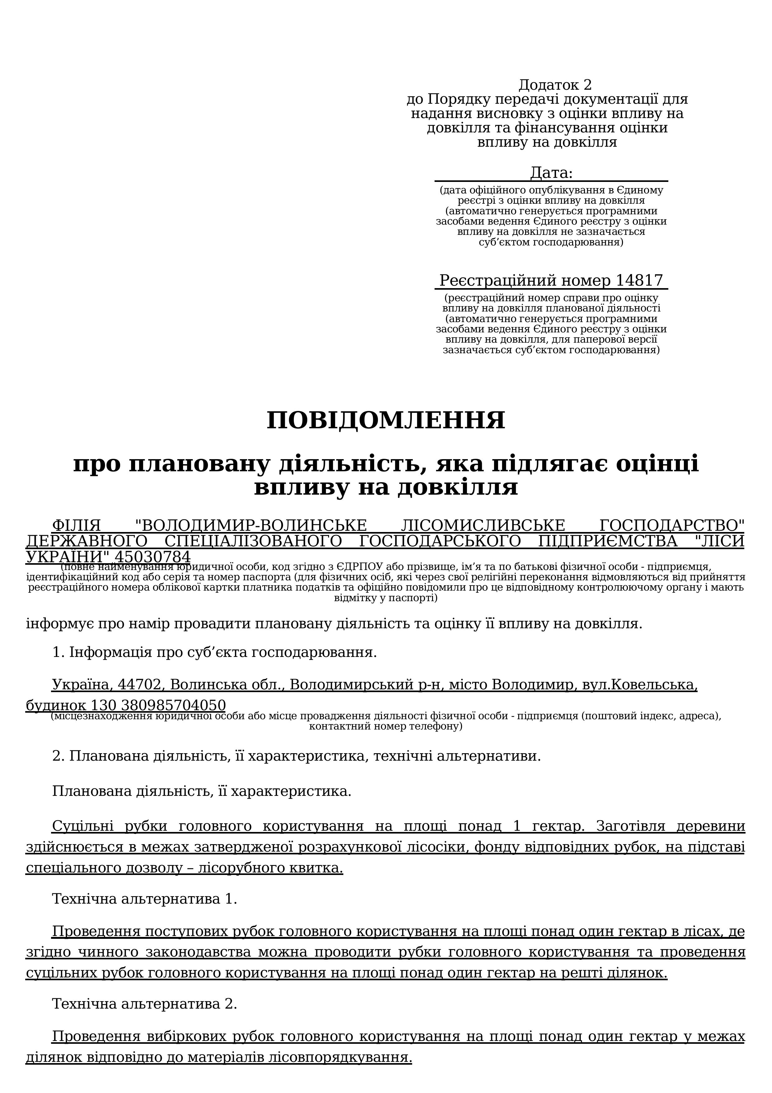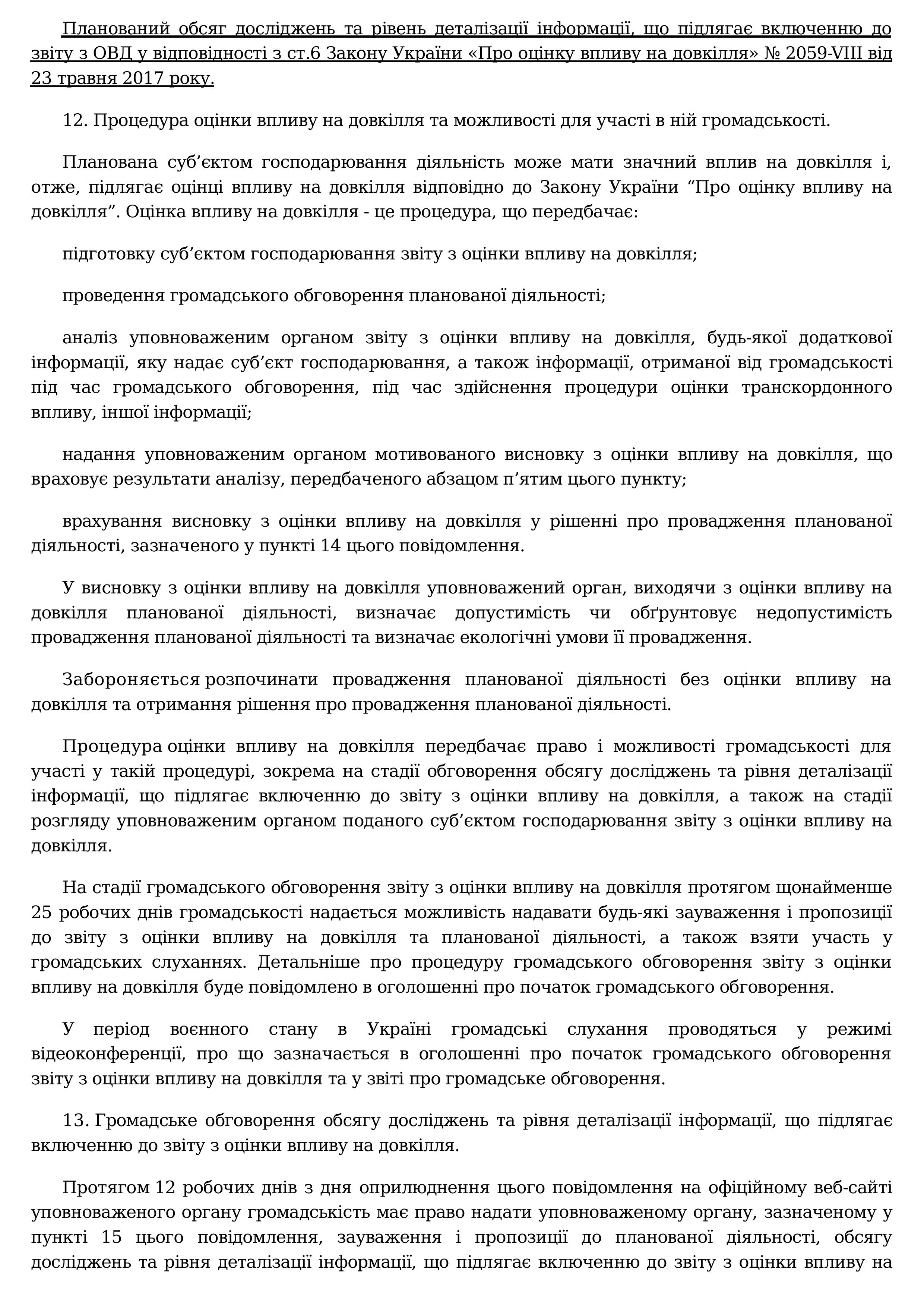 ПОВІДОМЛЕННЯ про плановану діяльність, яка підлягає оцінці впливу на довкілля