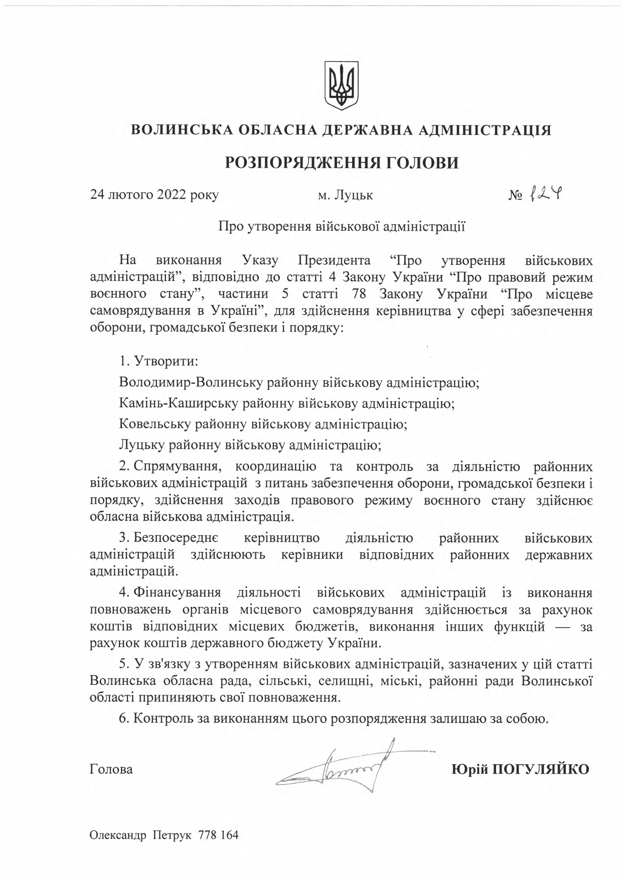 Про утворення військової адміністрації