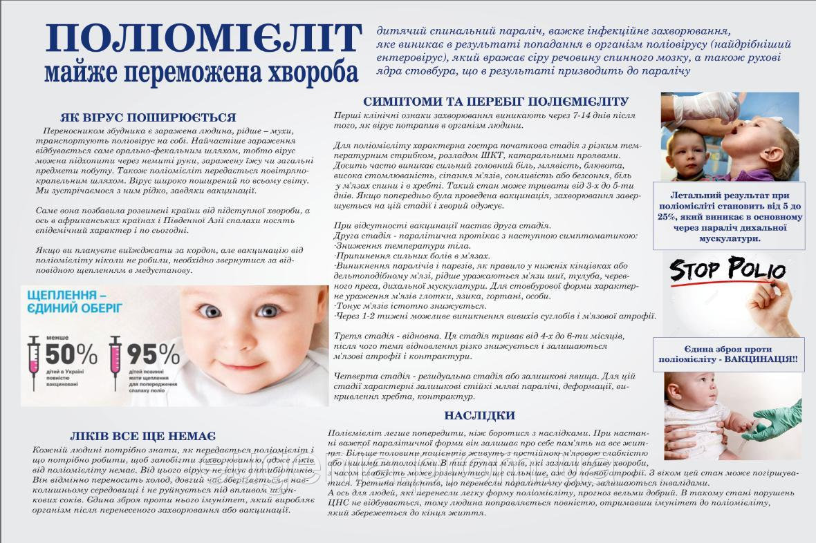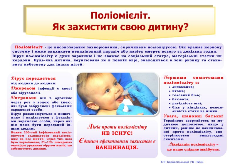 Поліомієліт — високозаразне вірусне захворювання, що може викликати невиліковний параліч і призвести до смерті. Ліків проти поліомієліту не існує. Єдиним і безальтернативним захистом від хвороби є вакцинація.