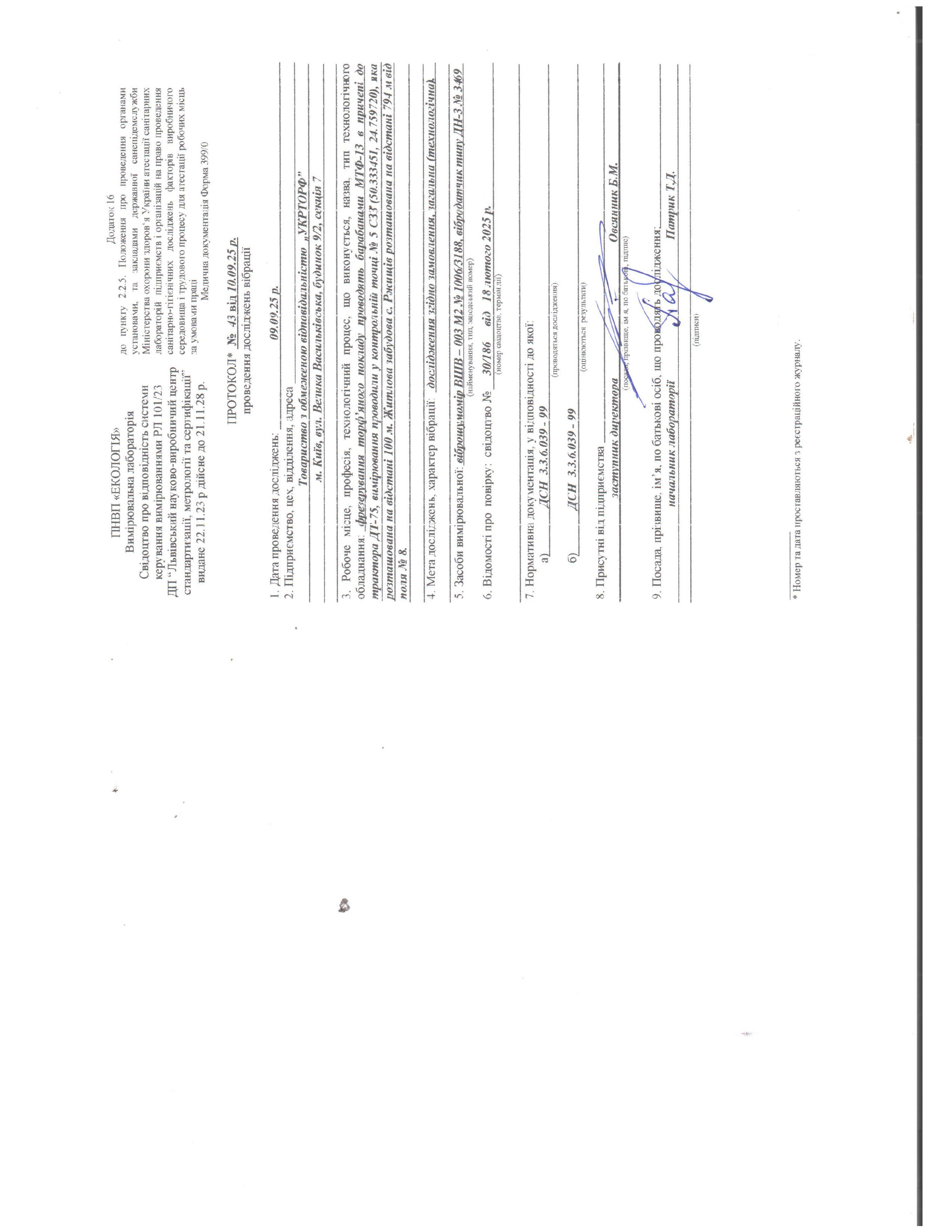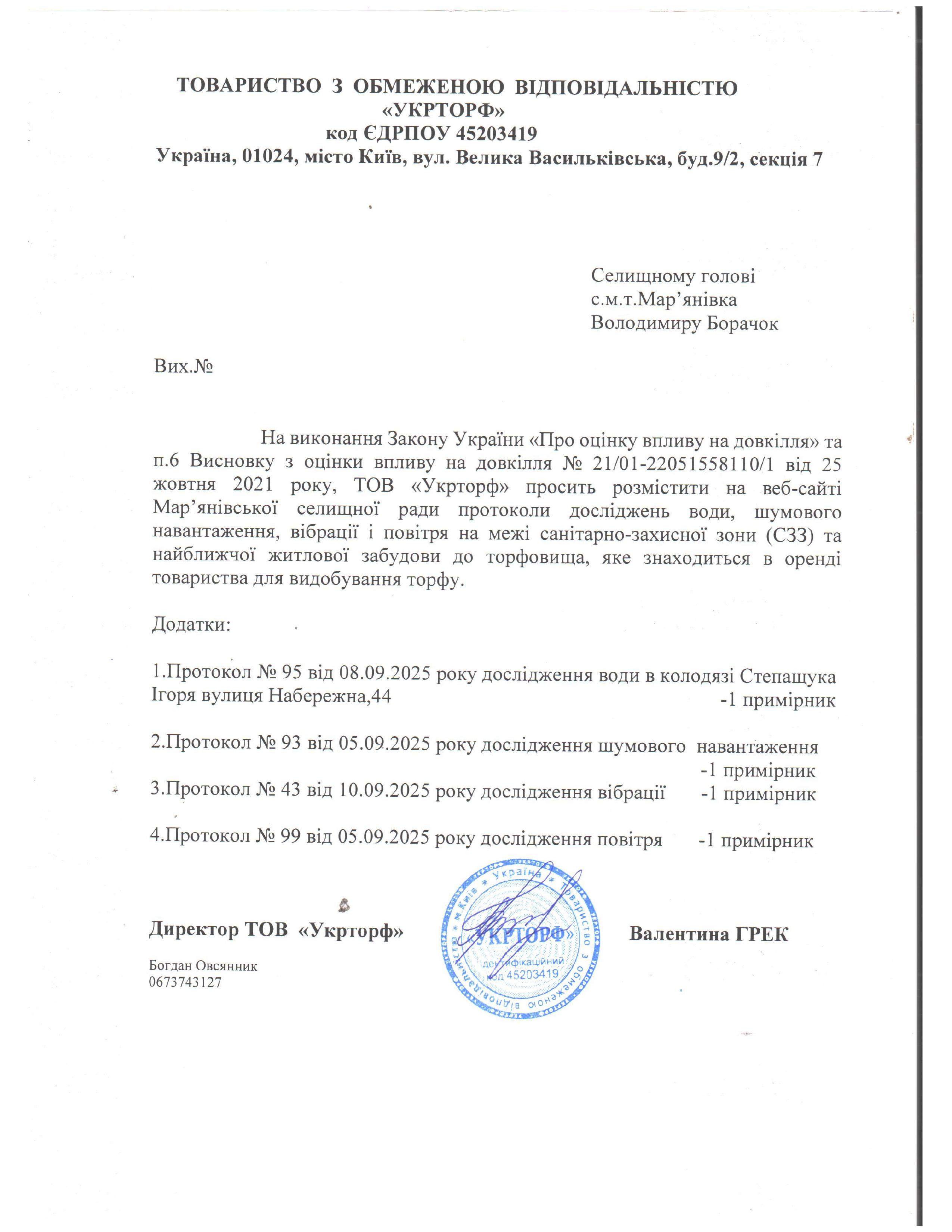 ТОВАРИСТВО З ОБМЕЖЕНОЮ ВІДПОВІДАЛЬНІСТЮ "УКРТОРФ" Протоколи дослідження води