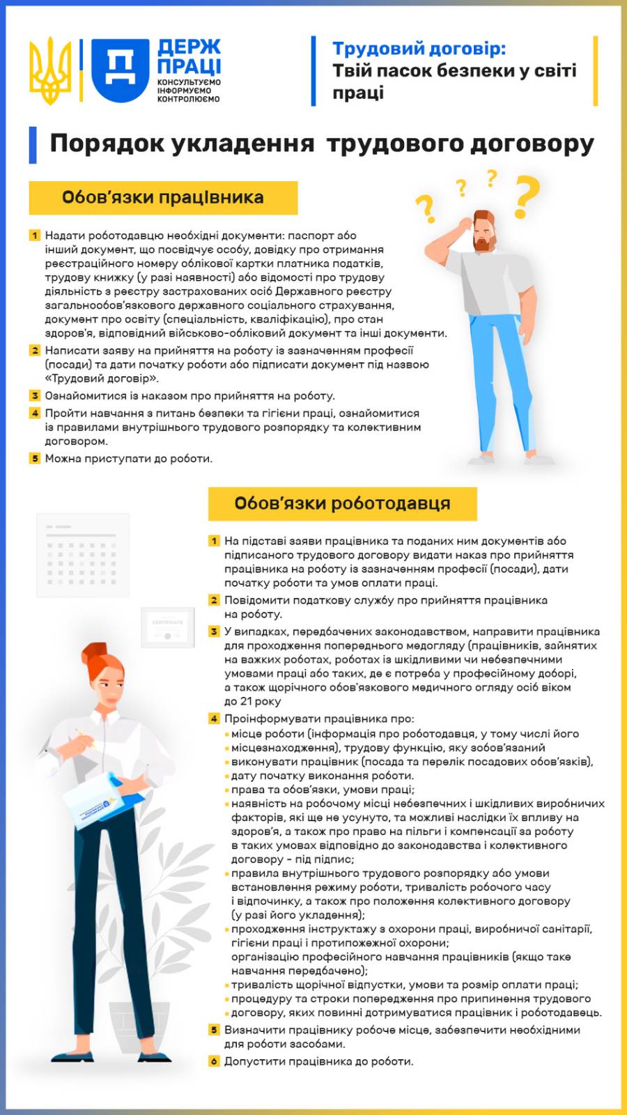 Держпраці закликає працівників і роботодавців дотримуватися законодавства про працю і укладати трудові договори. Такий підхід сприятиме створенню справедливих і безпечних умов праці для всіх та укріпленню економіки нашої країни.