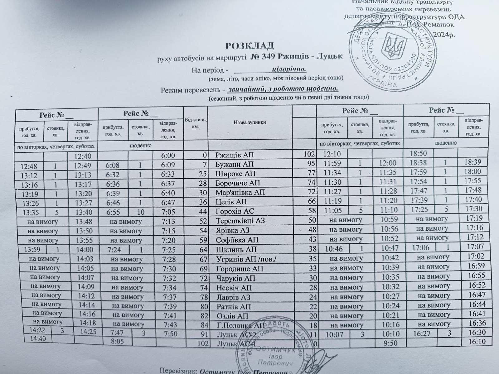 З 14 лютого 2024 року відновлюється рух автобуса рейсом Луцьк - Ржищів.