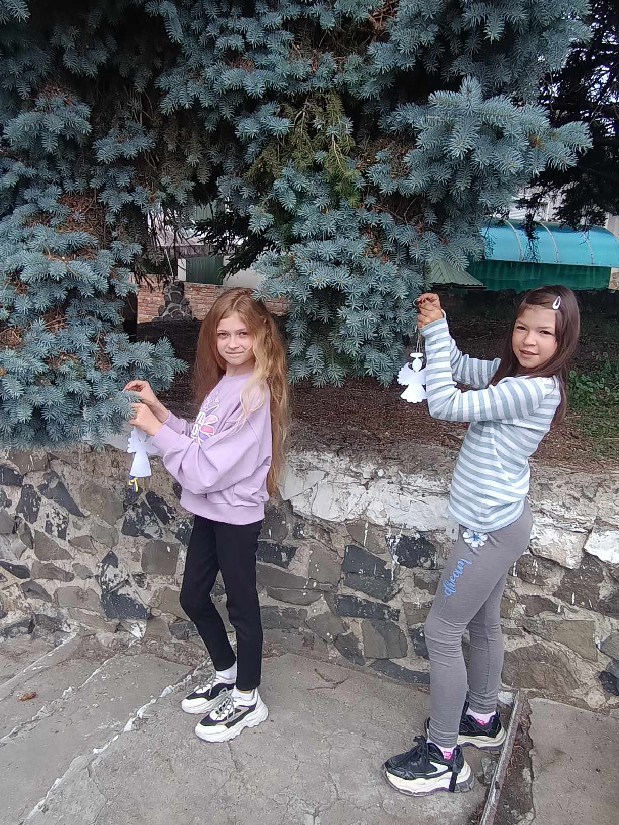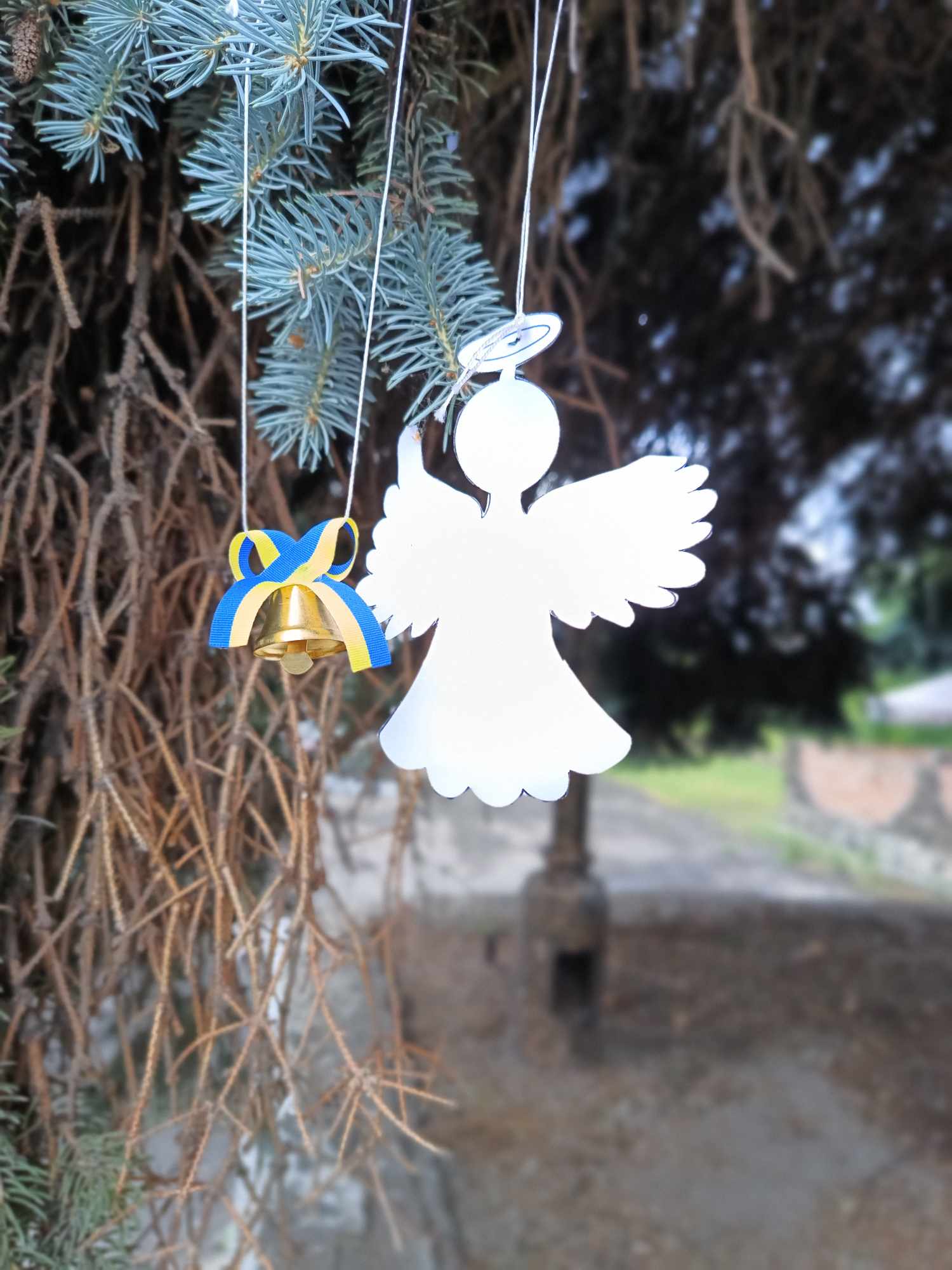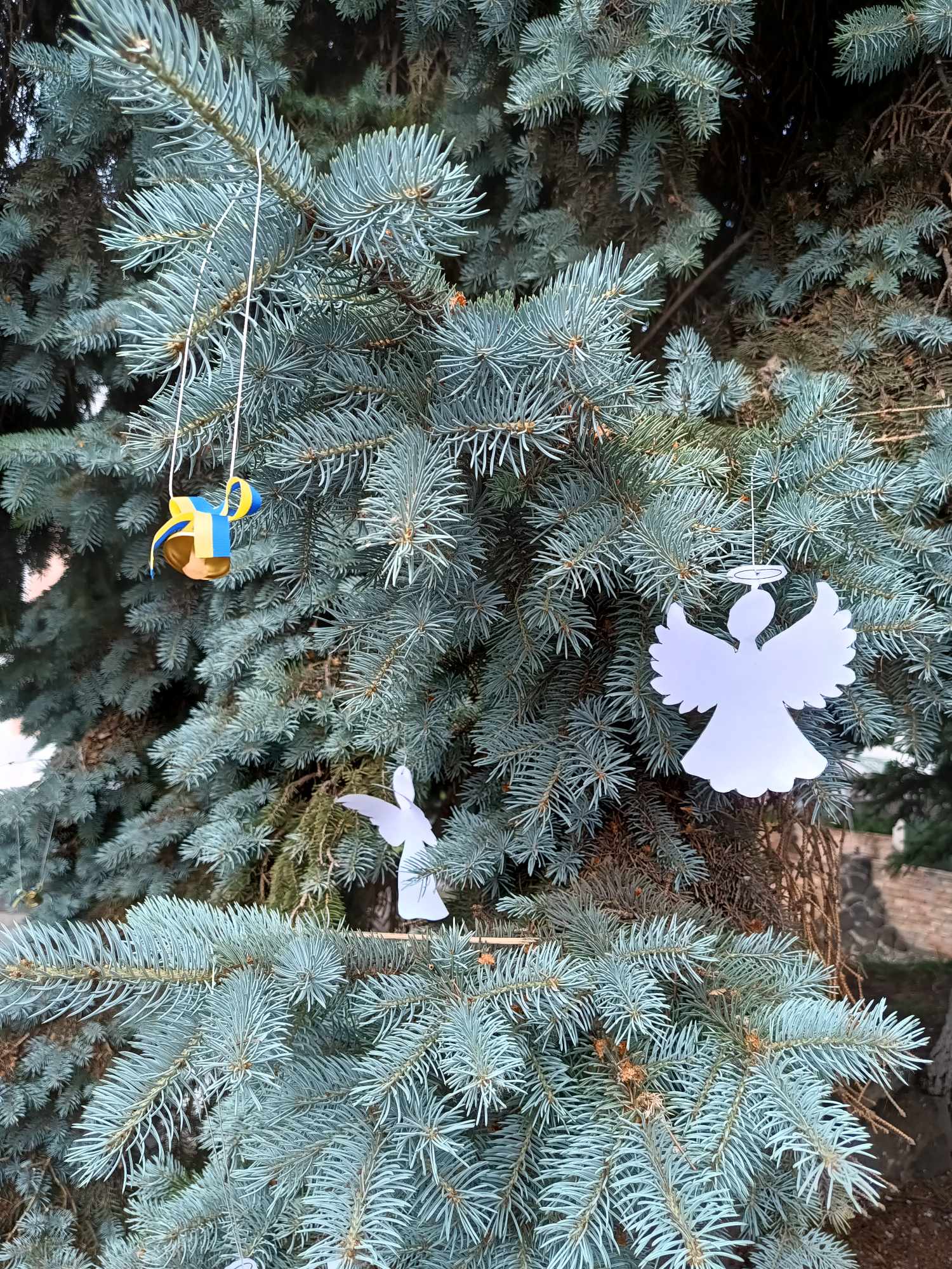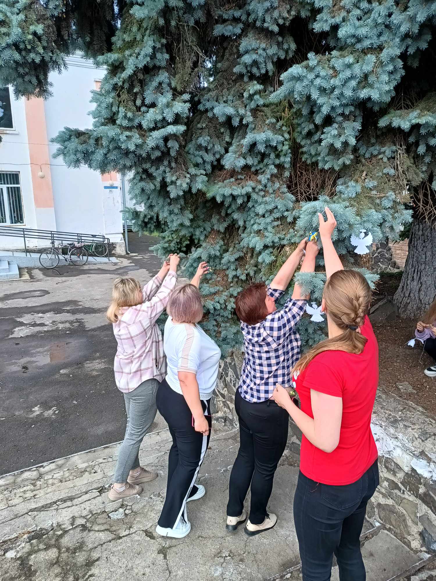Присутні розвісили ангелочки, це душі невинних дітей та дзвіночки , які символізують голоси дітей, які загинули, яких вже ніколи не почують батьки.