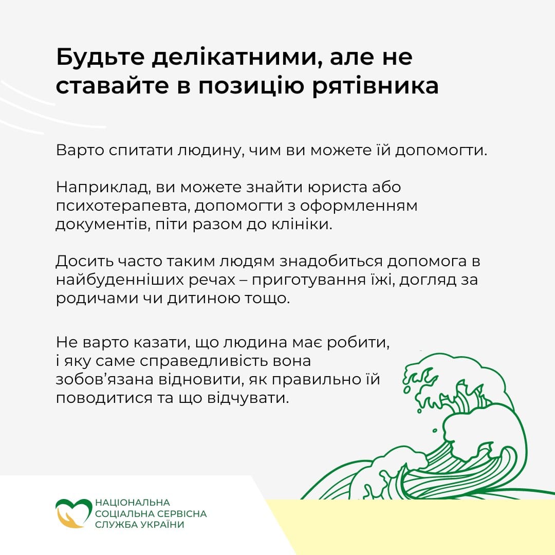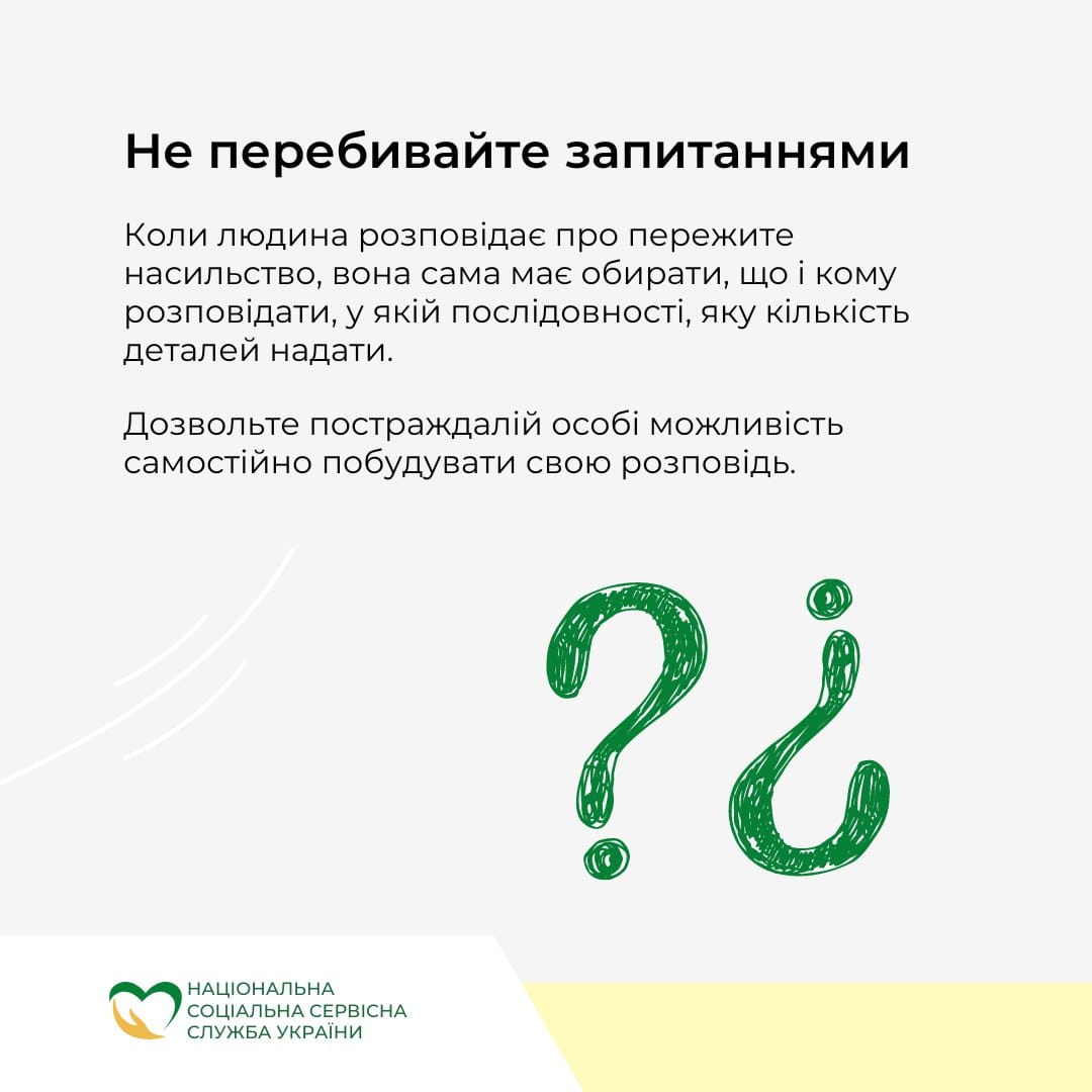 Під час спілкування з особами, що зазнали насильства, варто дотримуватися деяких правил комунікації. Необхідно враховувати, що постраждалим може знадобитися час для того, щоб розірвати коло насилля, тому не варто тиснути на них та виявляти байдужість.