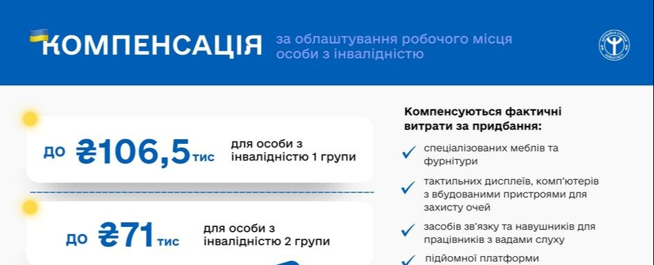 Компенсацію за облаштування робочого місця працевлаштованих робітників з інвалідністю І і ІІ груп