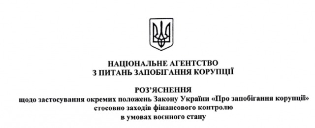 Роз’яснення від 28.02.2022 №2 щодо застосування окремих положень Закону України «Про запобігання корупції» стосовно заходів фінансового контролю в умовах воєнного стану