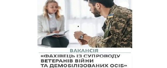 Шукаємо кандидата на вакантну посаду – фахівця із супроводу ветеранів війни та демобілізованих осіб