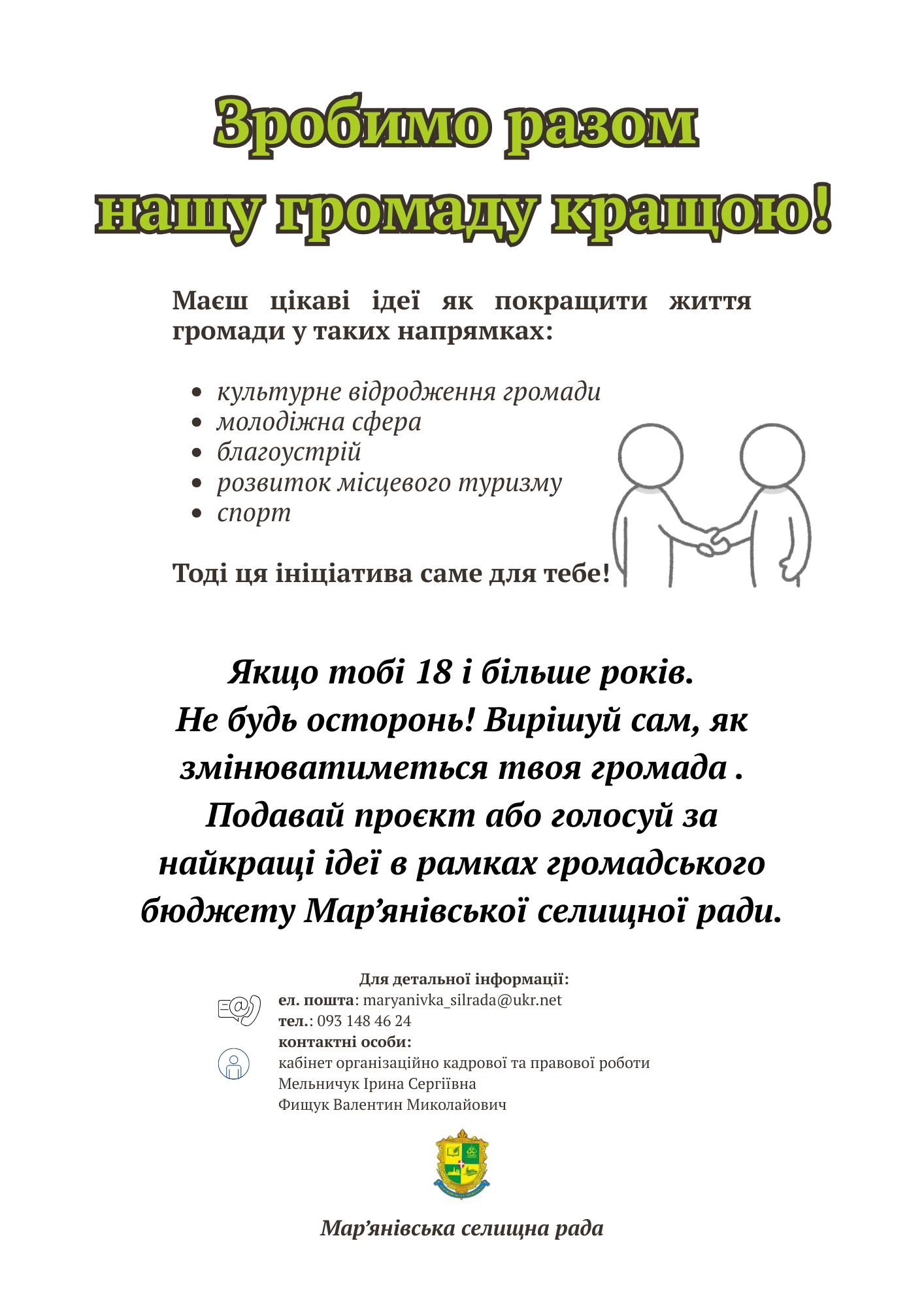 Ел. пошта: maryanivka_silrada@ukr.net